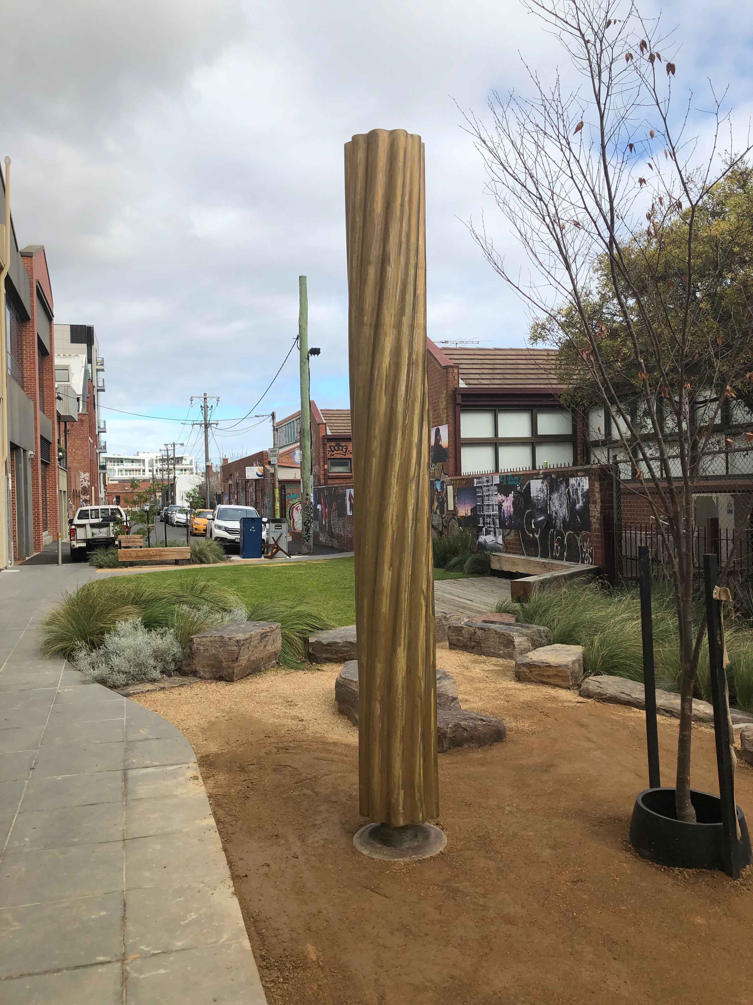2019 ‘Twist Tubular Bell” 3 metres tall cast bronze bell for the Brunswick Library Melbourne.